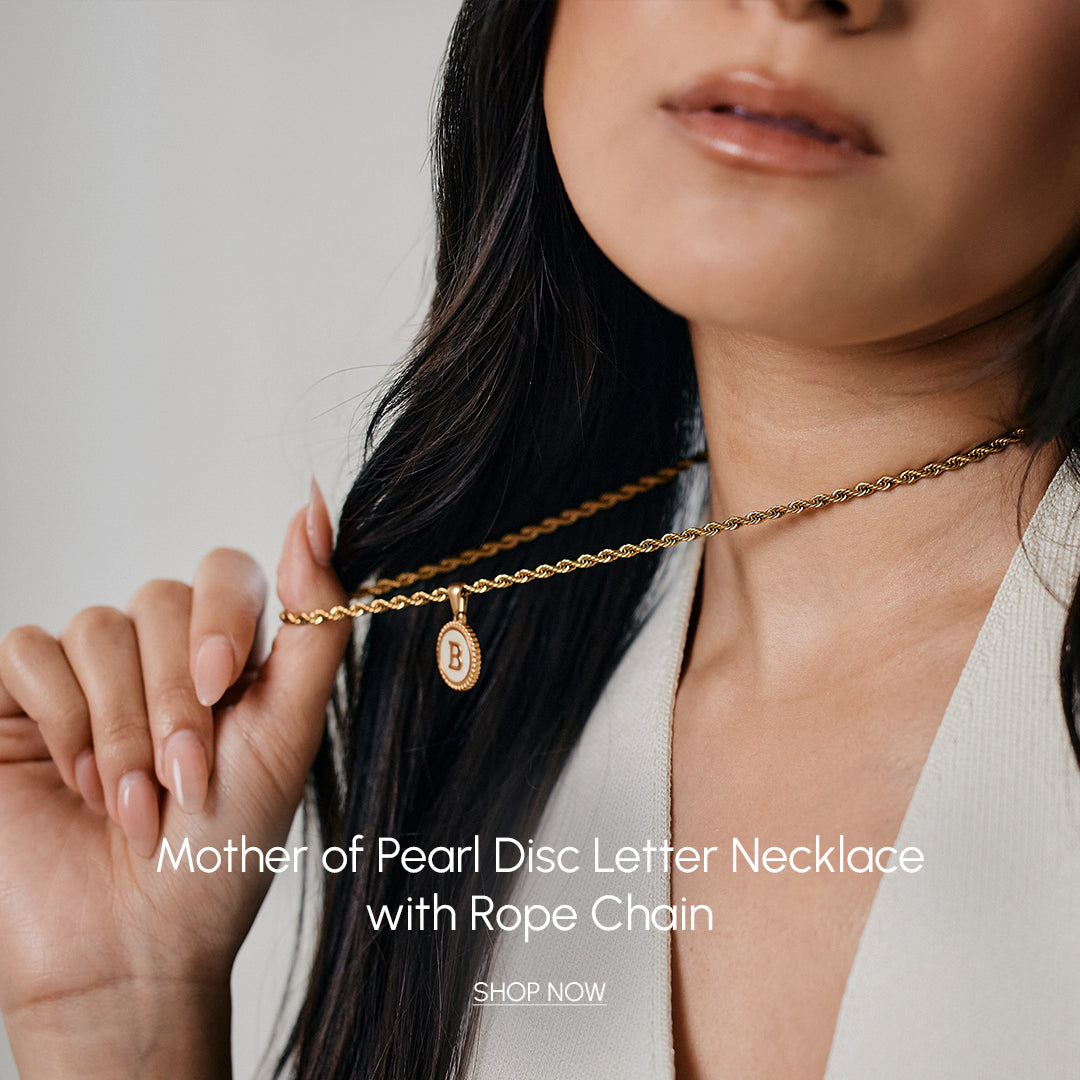 Mother of Pearl Disc Letter Necklace with Rope Chain