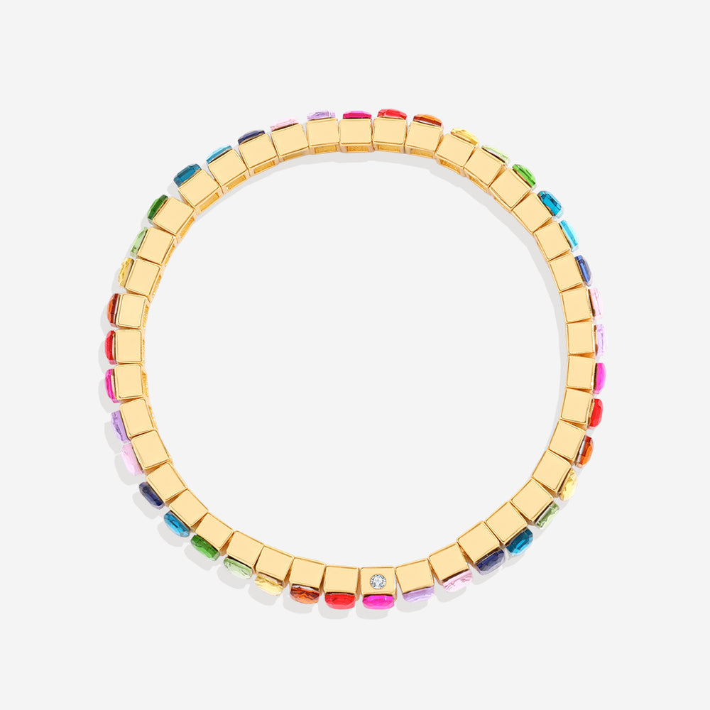 Mint & Lily's Rainbow Baguette Beaded Bracelet features a vibrant array of baguette gemstone beads, artfully arranged to create a colorful and eye-catching design. The stretchy band ensures a comfortable fit, making it easy to wear and style.