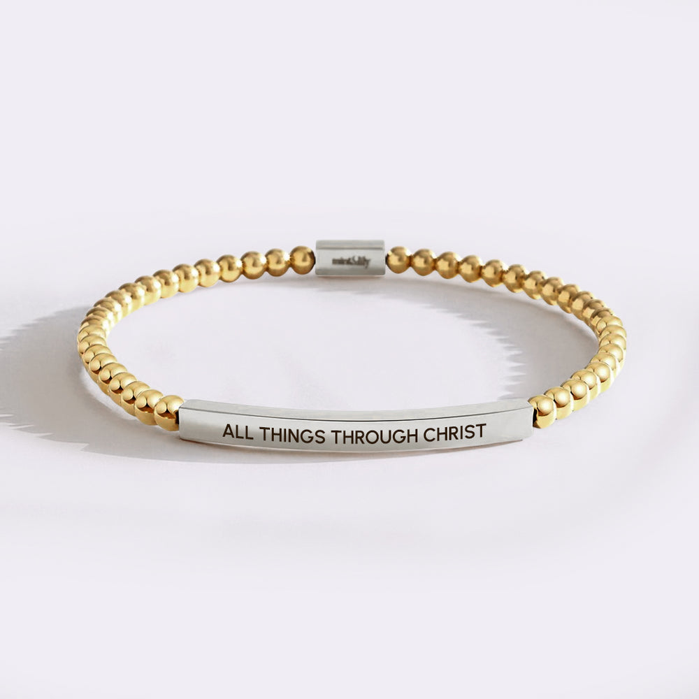 All Things Through Christ Silver Beaded Inspire Bracelet