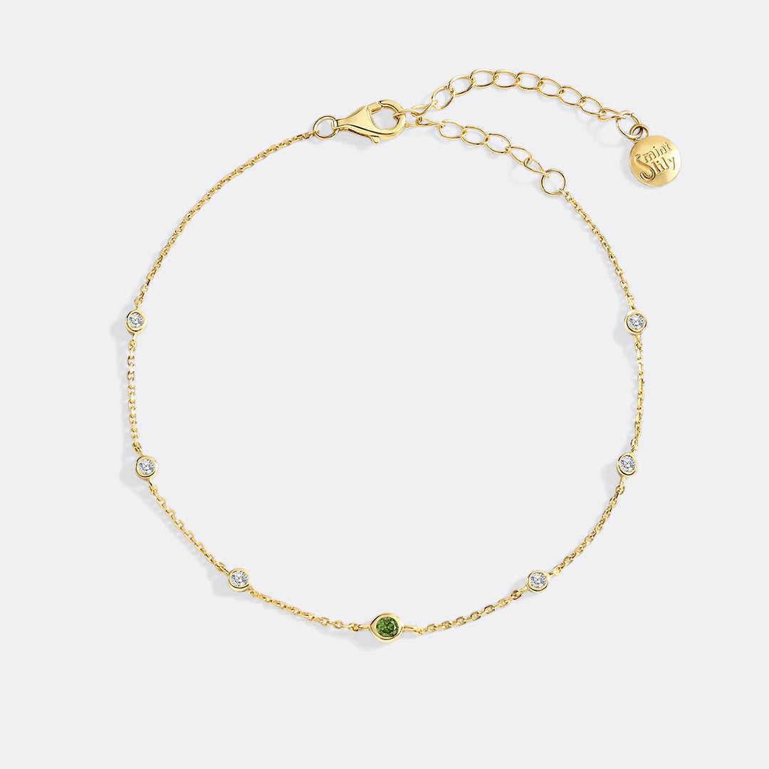 Celebrate every moment with a delicate birthstone bracelet, featuring your chosen gem framed by sparkling white gemstones. Perfect for layering or wearing solo, it adds a personal touch that feels both meaningful and timeless.