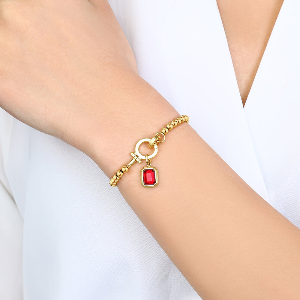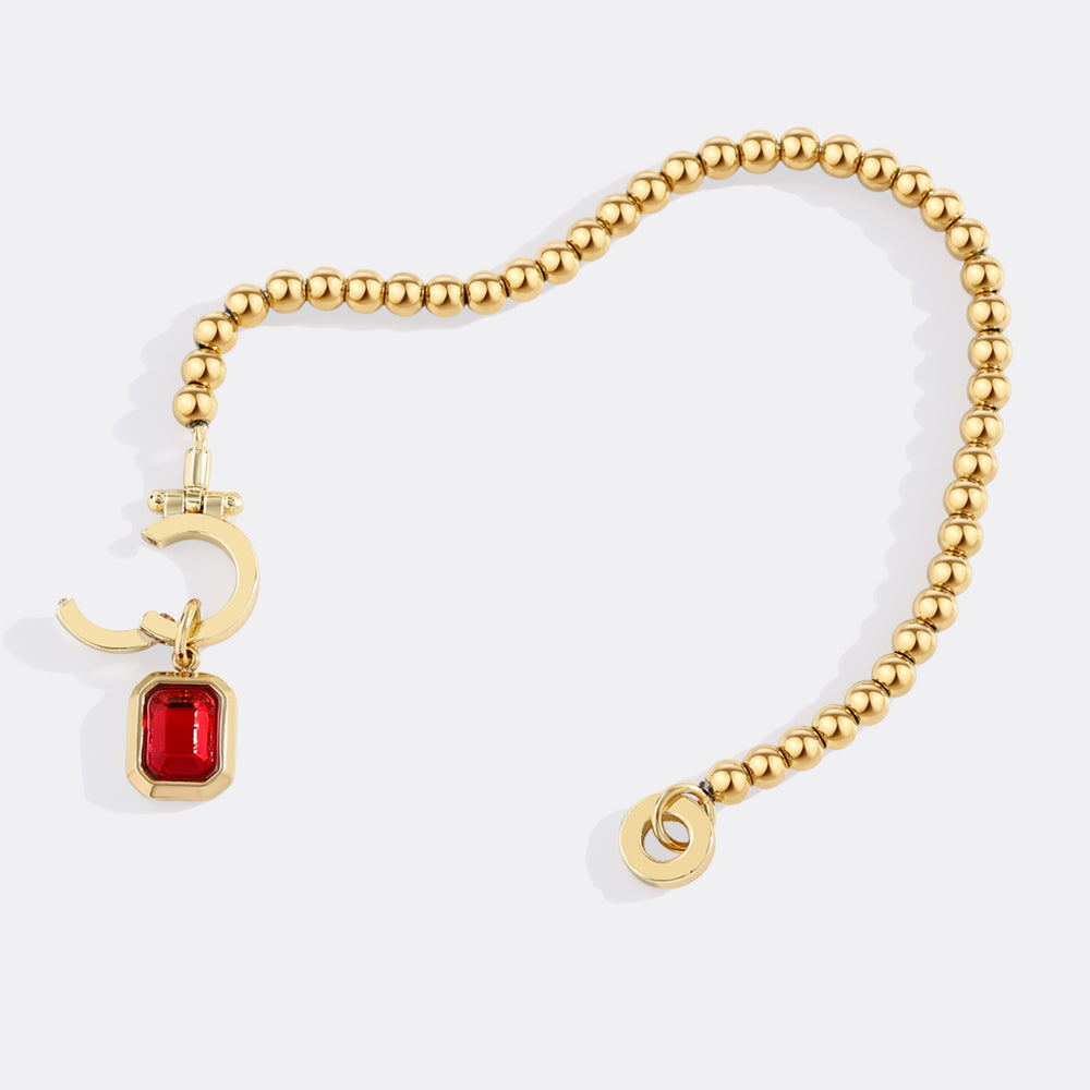 Elevate your everyday style with our Baguette Birthstone Charm on Beaded Bracelet. This elegant piece features polished beaded detailing paired with a striking baguette-cut birthstone charm that adds a meaningful pop of color and sparkle.