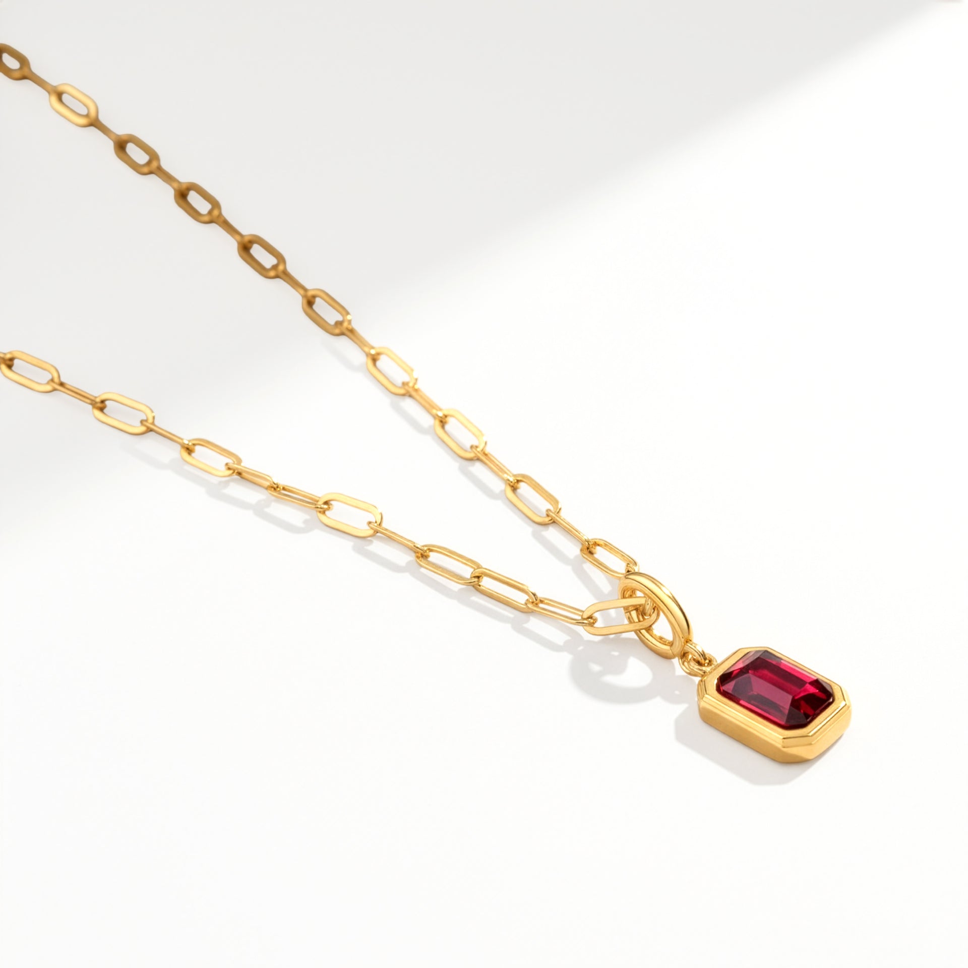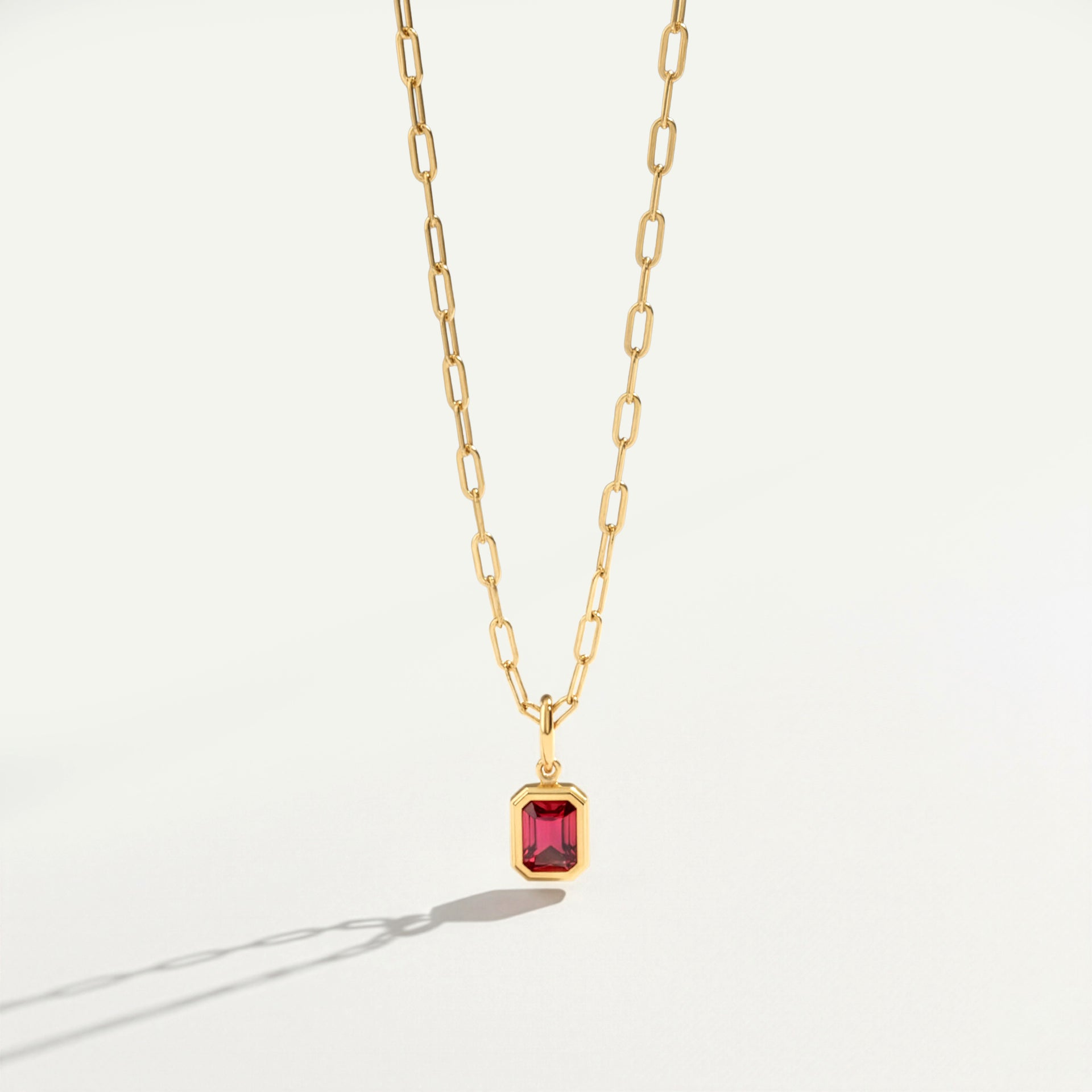 Mint & Lily's Baguette Birthstone Necklace features a stunning baguette-cut birthstone elegantly suspended from a sleek paperclip chain. This design beautifully highlights the unique shape of the birthstone, adding a modern touch to a classic piece.
