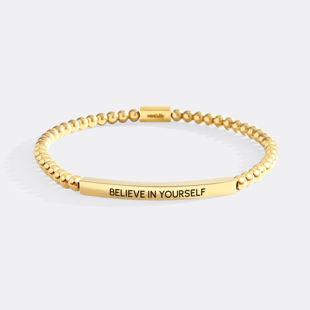 A daily reminder that your strength starts within. The Believe in Yourself Beaded Inspire Bracelet combines meaningful words with effortless style, designed to uplift and empower you wherever life takes you.