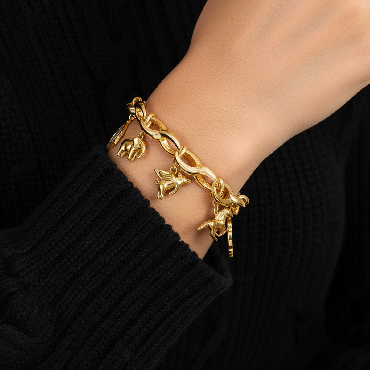 A special charm link bracelet, each link on our Bold Charm Link Cable Bracelet has a spring hinge clasp that is able to open and close to customize and wear your favorite charms.
