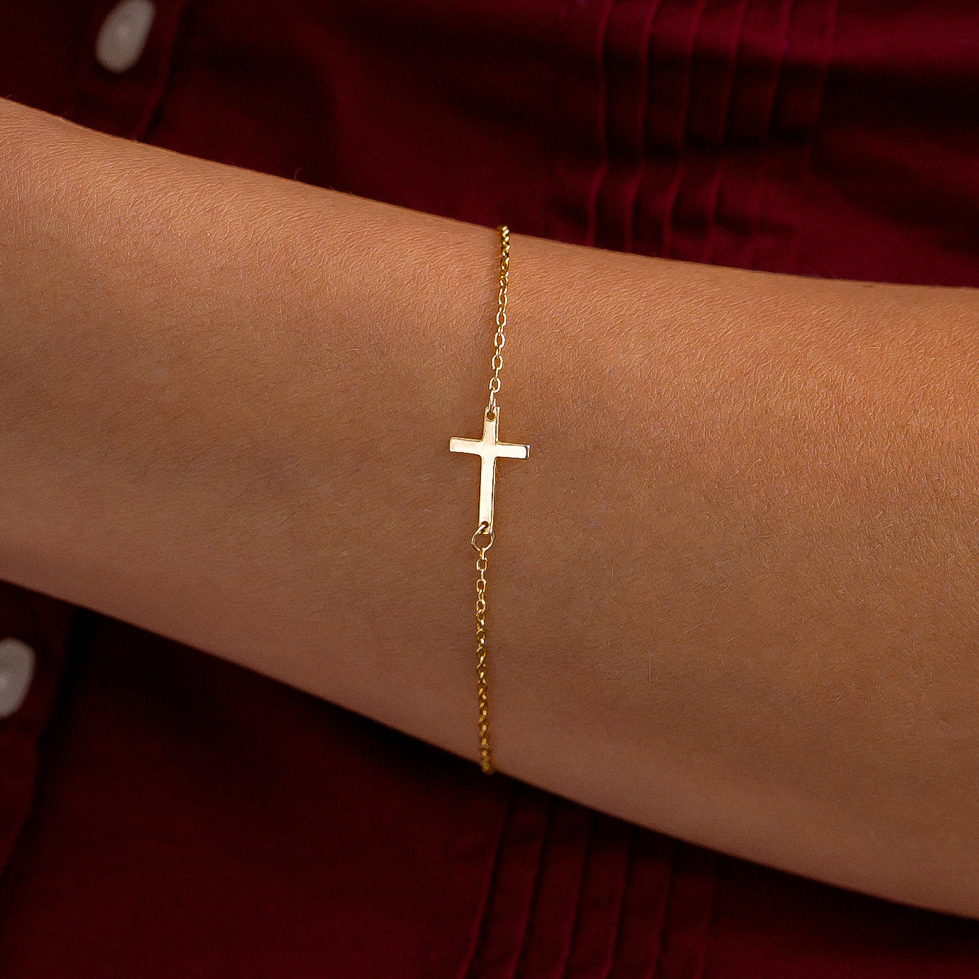 Embrace simplicity with this dainty gold bracelet. The subtle cross charm adds a meaningful touch without overpowering your style.