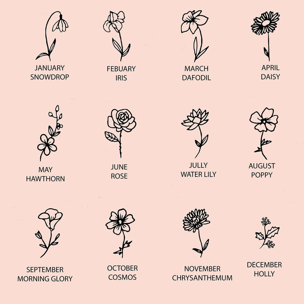 Dainty Birth Flower Bracelet with Birthstone Charm