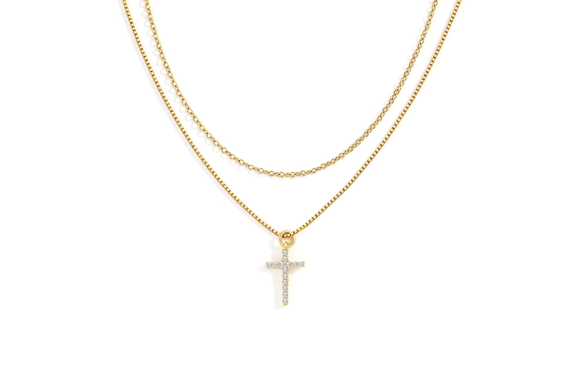 Dainty Cable Necklace with Pave Cross Chain Necklace Stacking Set