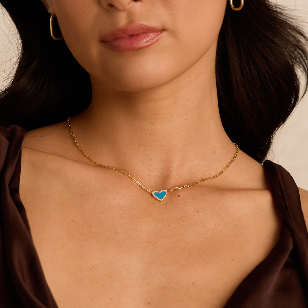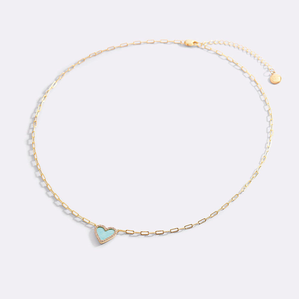 A playful twist on classic romance. This heart paperclip necklace blends delicate edges with bold links and a burst of colored stones — perfect for layering or wearing solo. It’s the kind of piece you reach for again and again.