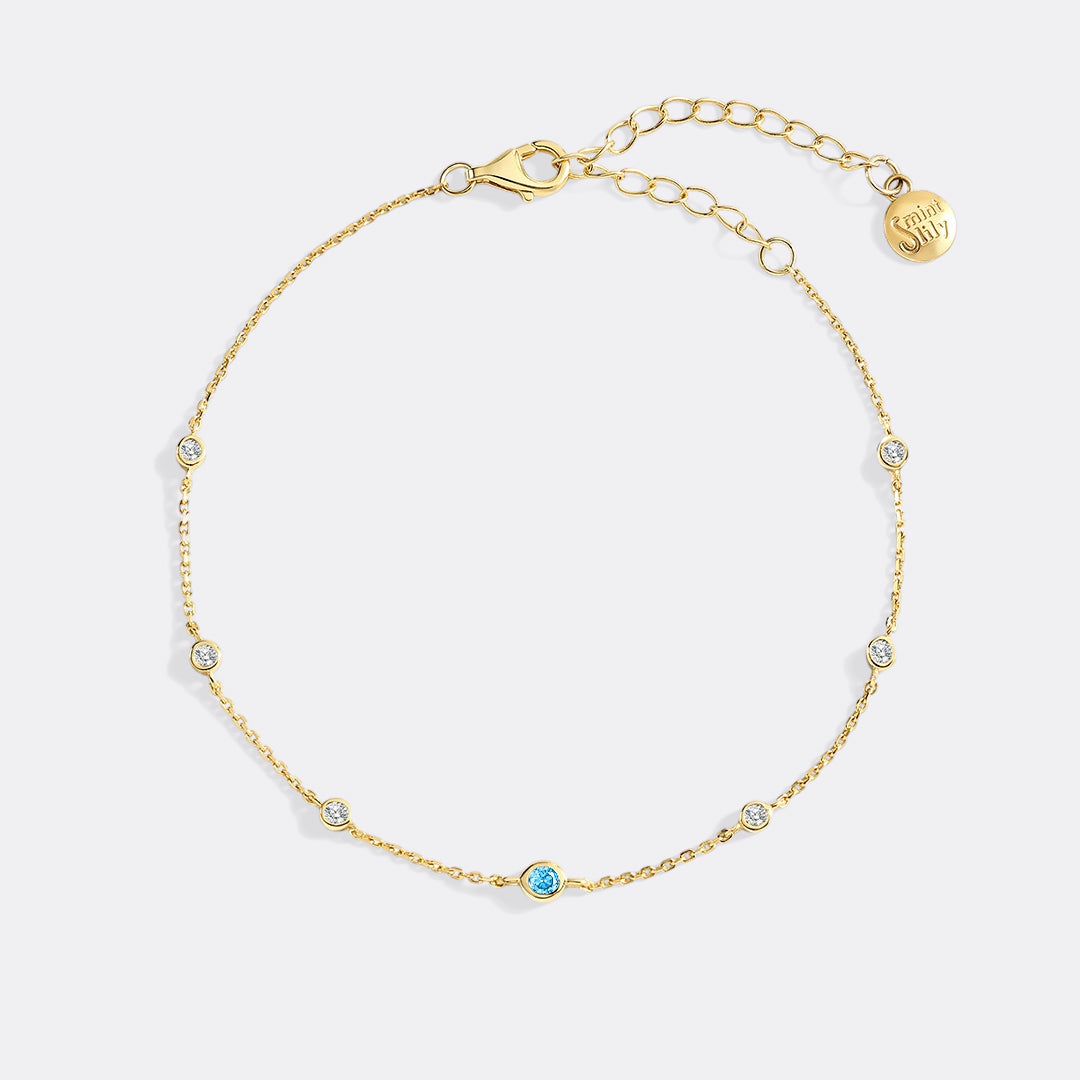 Celebrate every moment with a delicate birthstone bracelet, featuring your chosen gem framed by sparkling white gemstones. Perfect for layering or wearing solo, it adds a personal touch that feels both meaningful and timeless.
