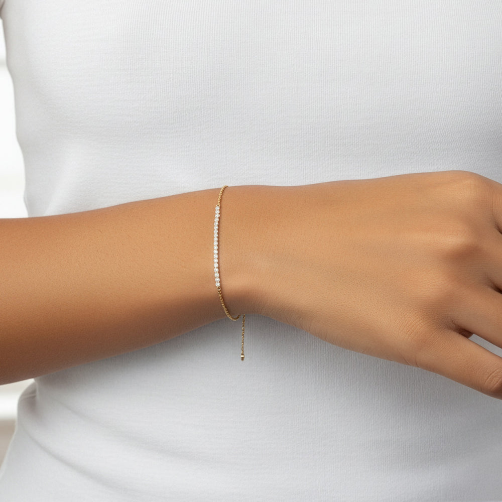 Designed for comfort and versatility, this adjustable bracelet offers a perfect fit for wrists sized 6.5", 7", and 7.5". A timeless piece made to move with you, every day.