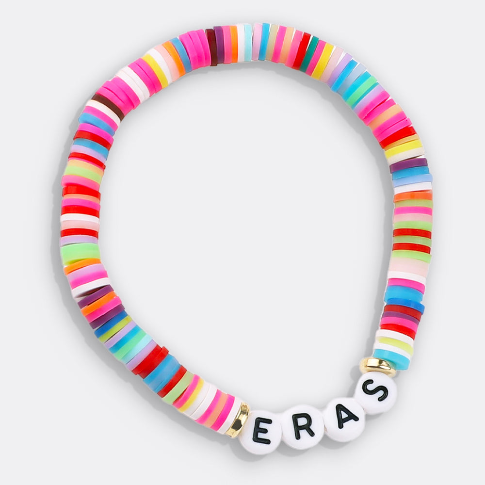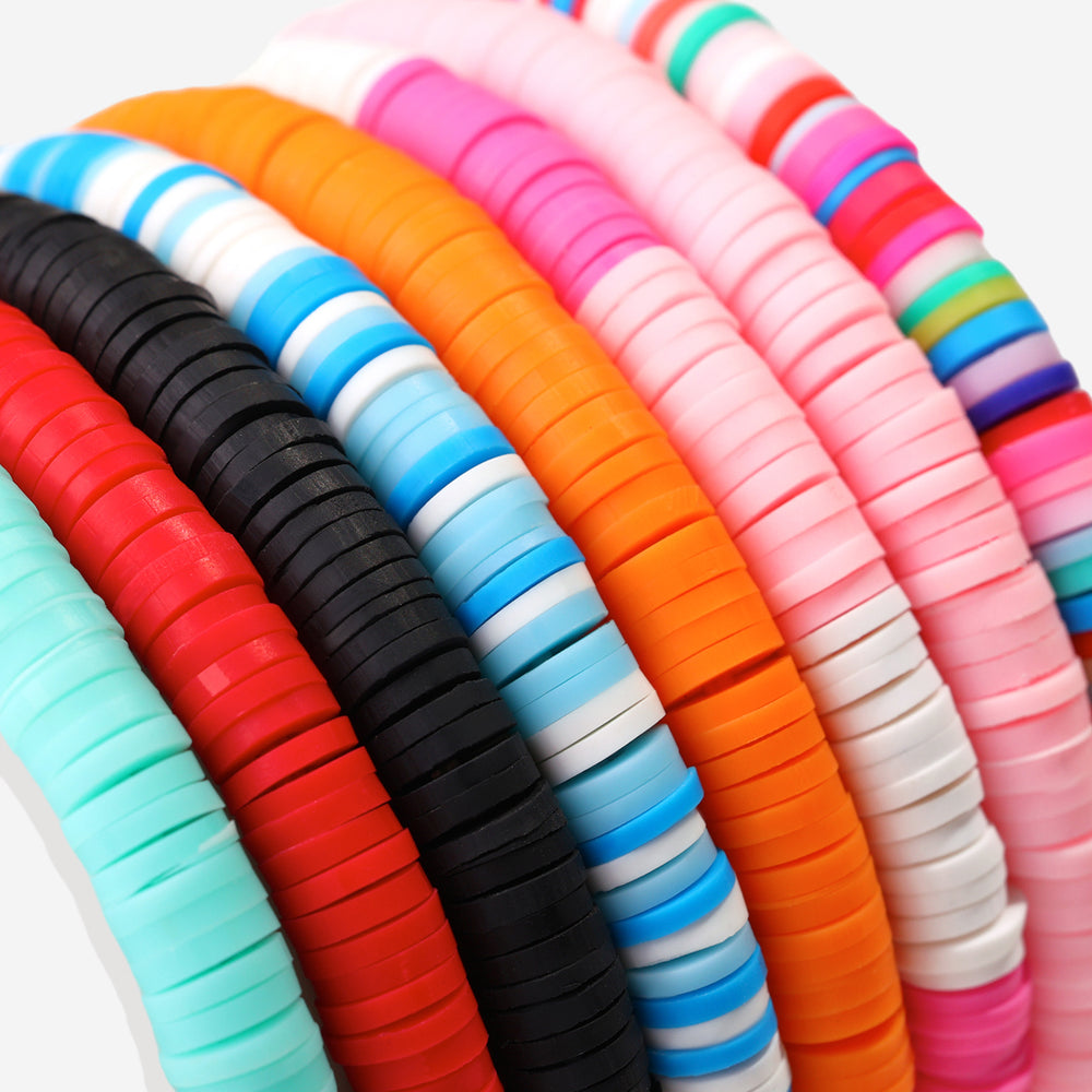 Materials: Polymer Heishi Beads with 18K Gold Plated Accent Beads on a Jewelry-Grade Elastic Band (Read More)