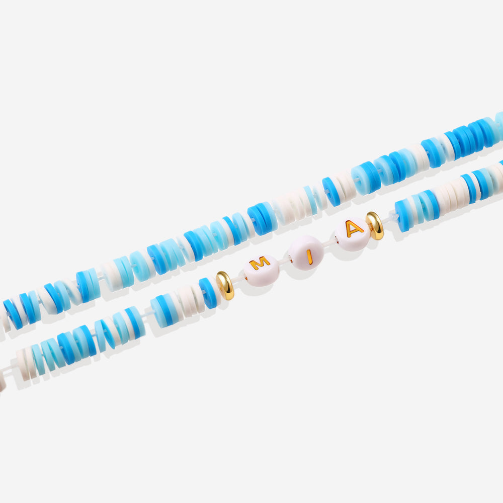Materials: Polymer Heishi Beads with 18K Gold Plated Accent Beads on a Jewelry-Grade Elastic Band (Read More)