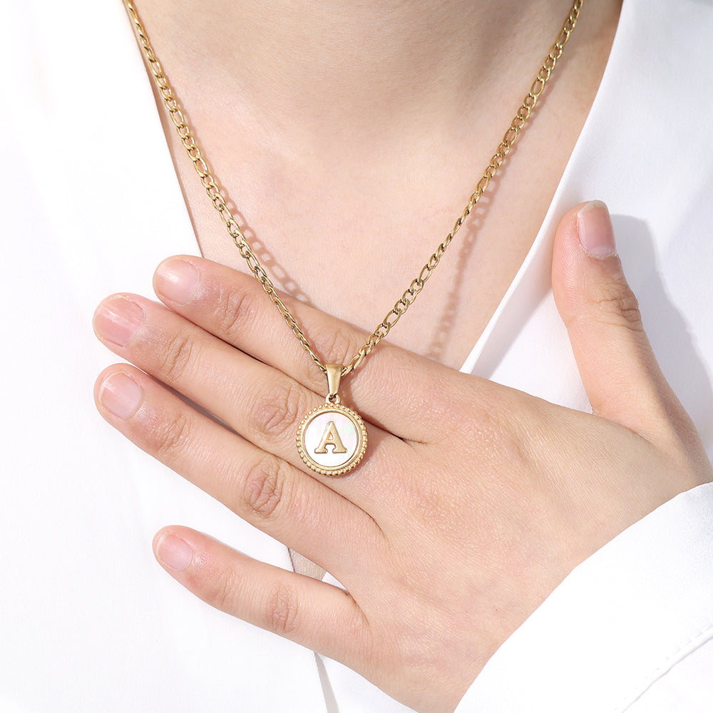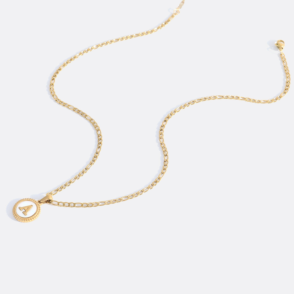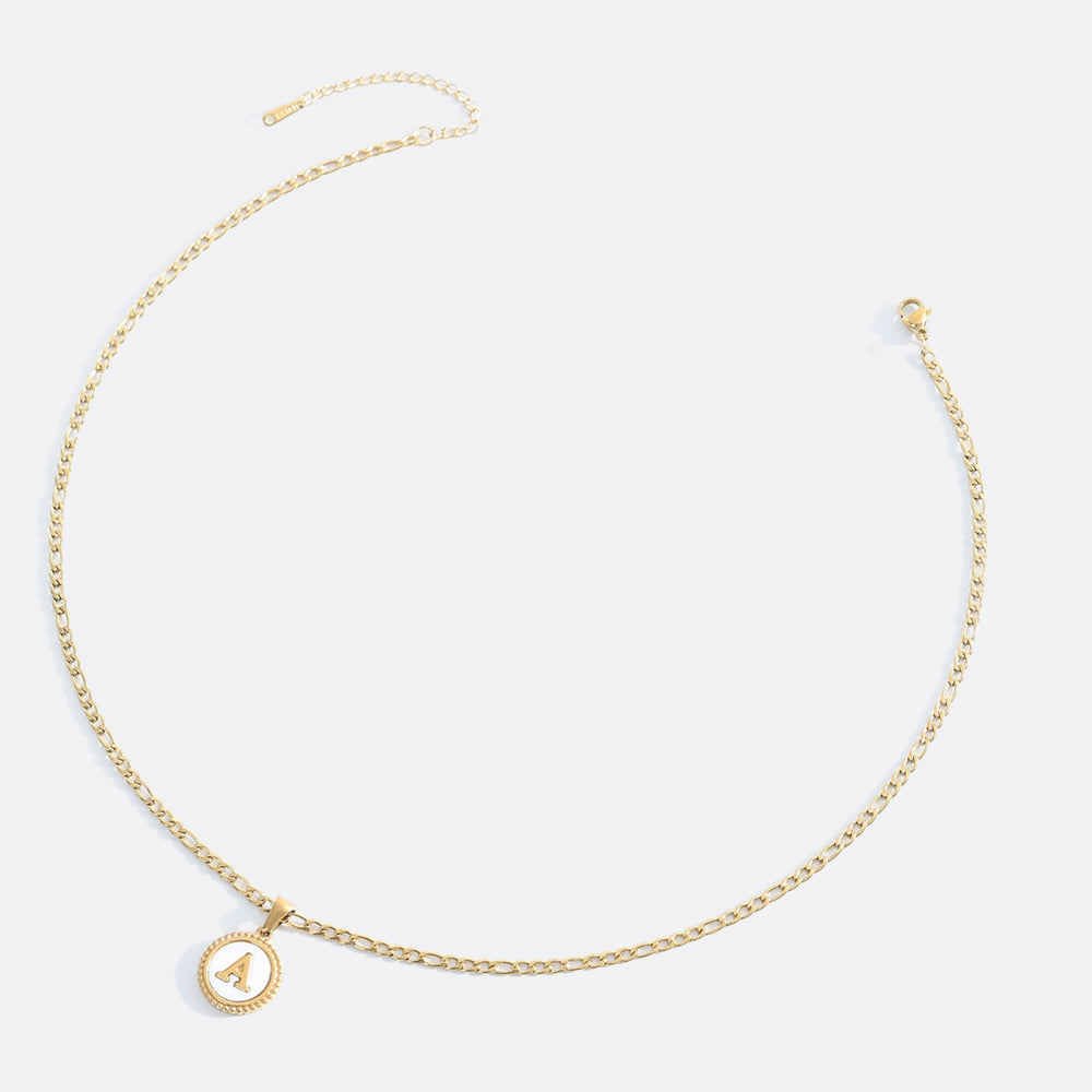 Mother of Pearl Disc Letter Necklace with Figaro Chain
