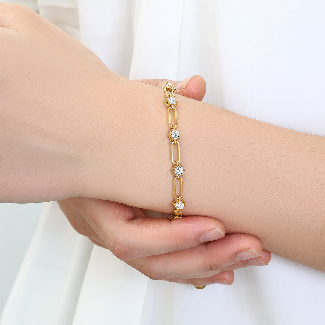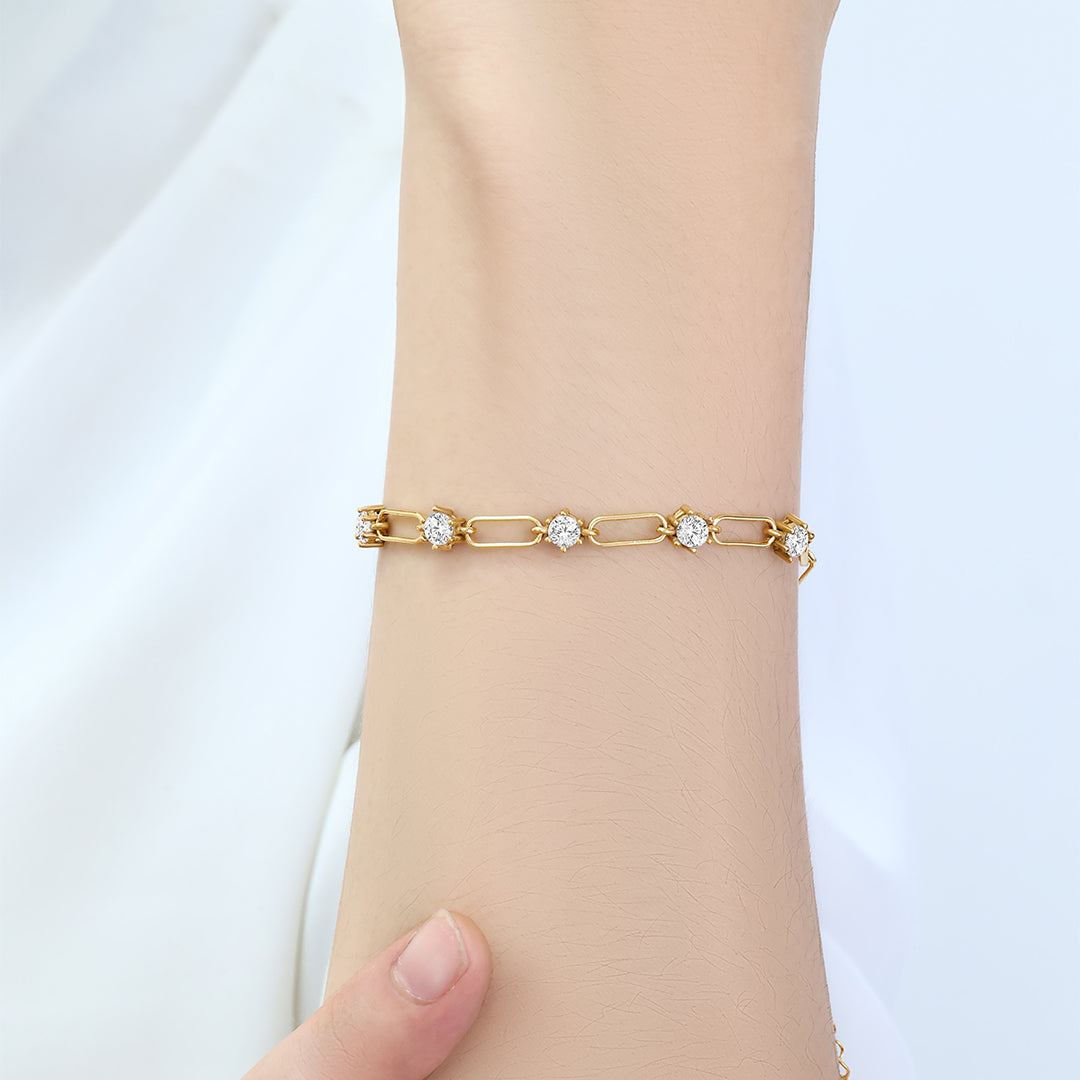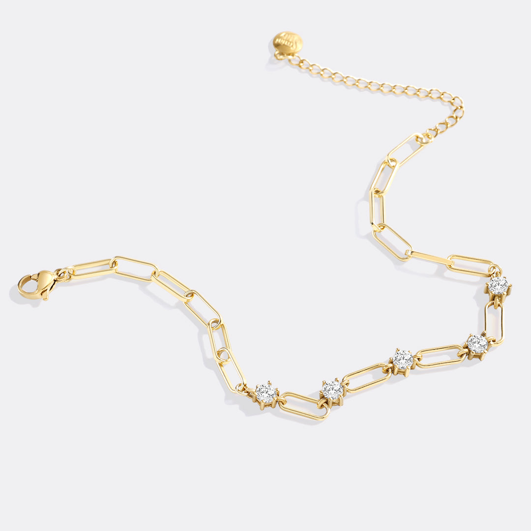 A customizable paperclip bracelet that feels modern and light. Polished links catch the light in, while delicate gemstones of your choice add a soft sparkle. An easy piece to slip on and instantly elevate your everyday style.