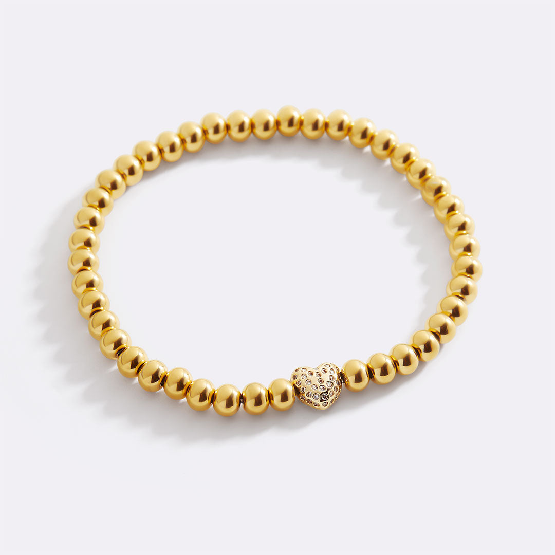 Pave Heart Gold Beaded Bracelet
