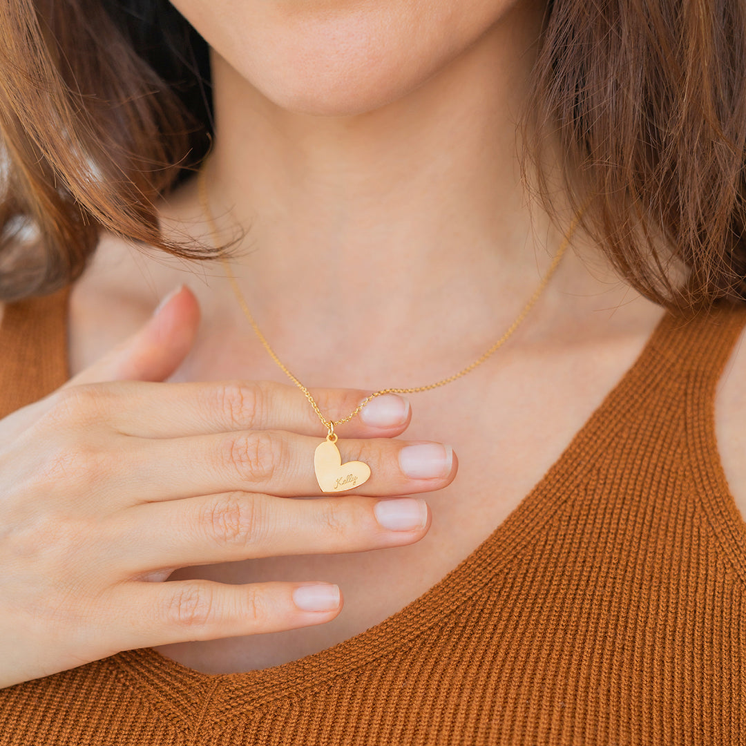 This exquisite necklace features a heart-shaped pendant engraved with your name.