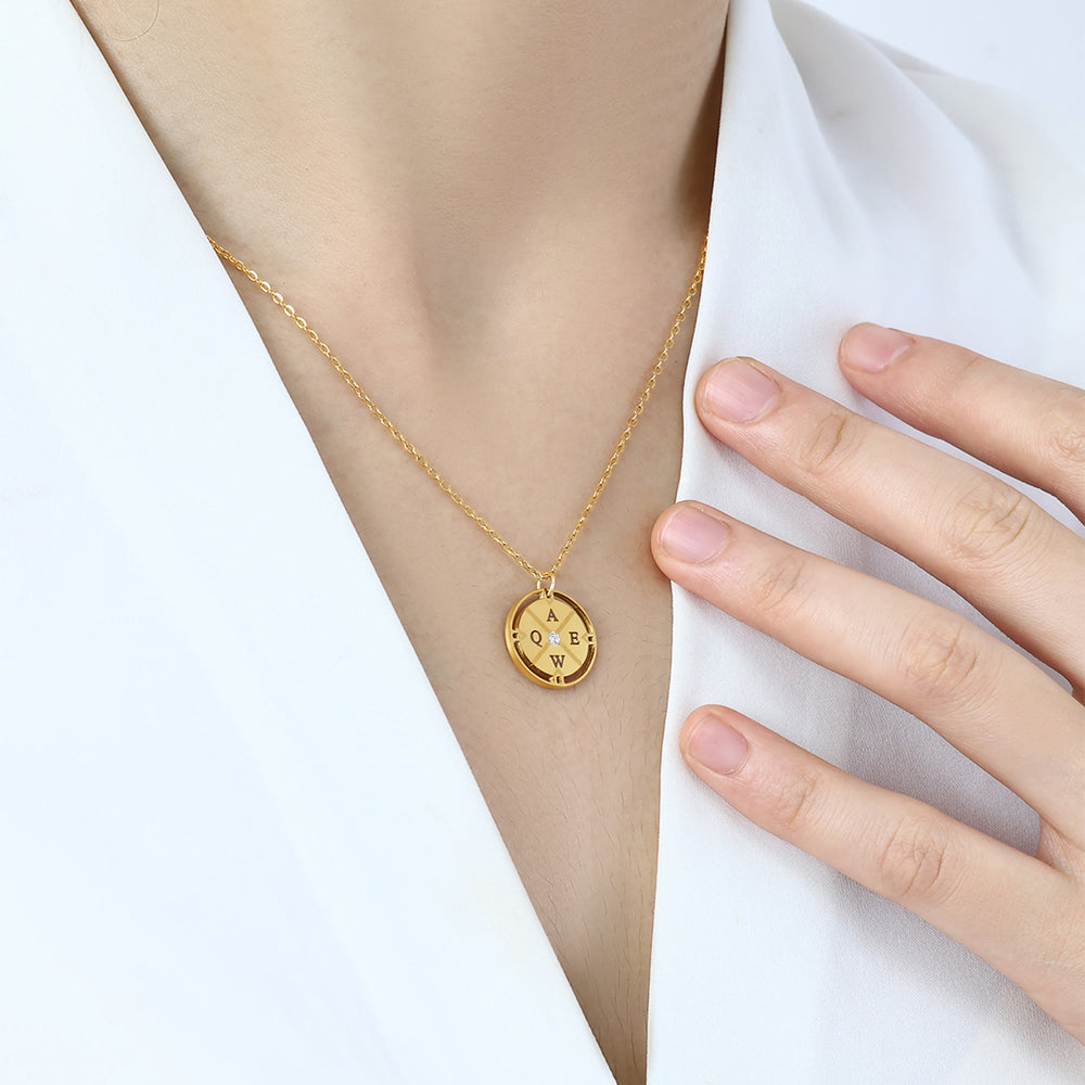 A symbol of direction, purpose, and adventure — this mini compass pendant necklace makes the perfect personalized gift. Delicate and meaningful, it can be engraved with initials to commemorate life’s journeys.