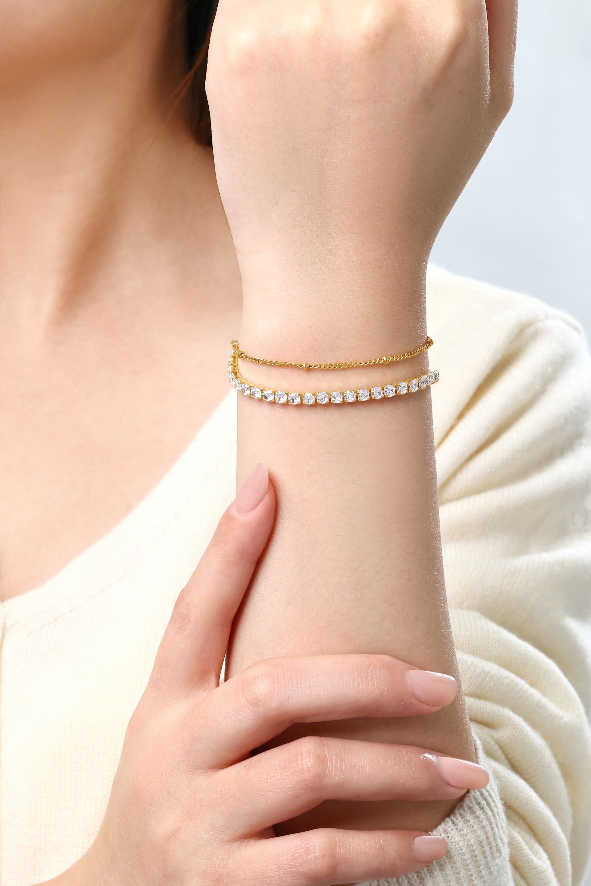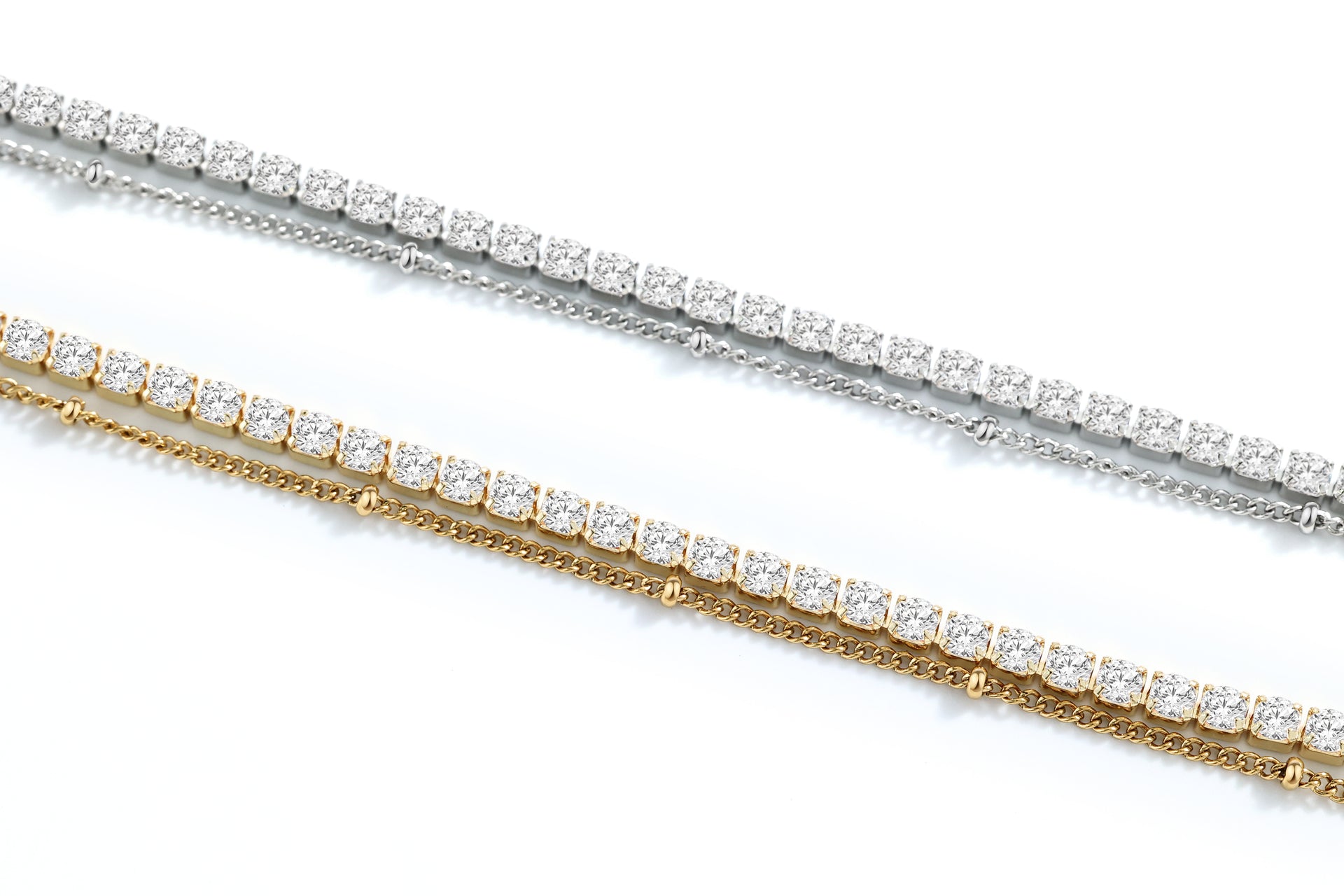 Tennis Bracelet and Satellite Chain Bracelet Bundle