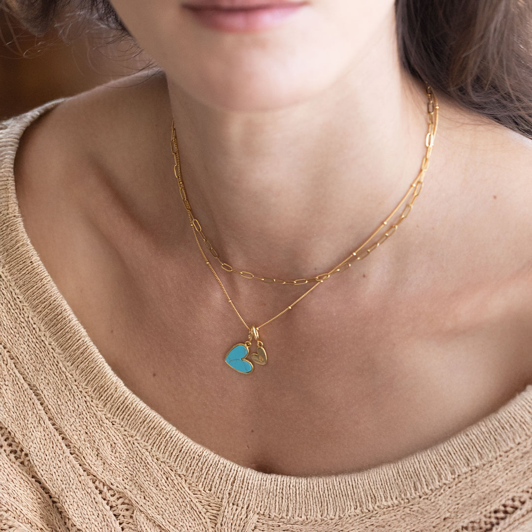 Add a pop of color with the Turquoise Initial Heart Necklace. Personal and playful, it’s the perfect touch of charm to brighten any outfit. Wear your initial close, with a hint of bold flair.