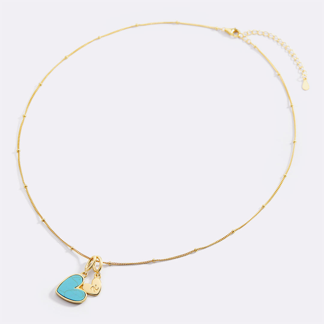 Turquoise Heart Initial Necklace