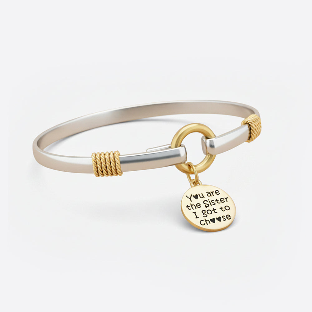 Hermana, tengo que elegir: pulsera con dijes personalizados de dos tonos